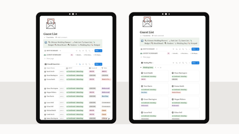 Keep track of all your invited guests, RSVPs, dietary restrictions, and seating arrangements for a smooth, stress-free celebration.